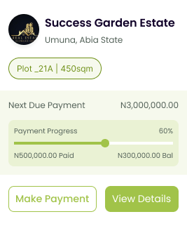 Turn your dream of land ownership into reality with transparent savings plans. Start your journey with as little as N50,000 and pay over 24 months.